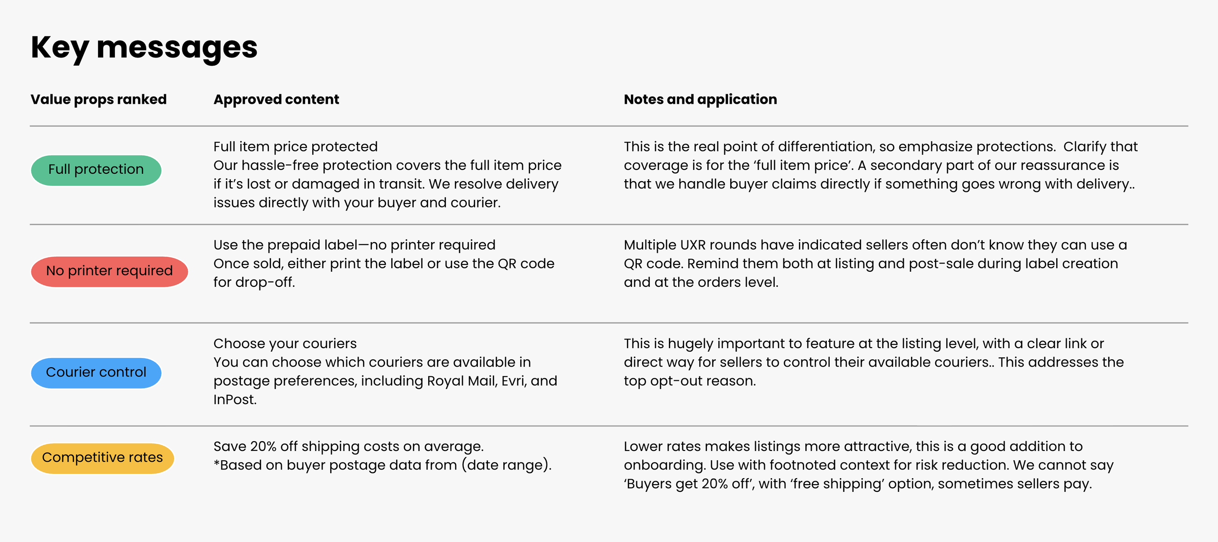 Applying those messages consistently across onboarding, listing, seller preferences, and post-sale surfaces.