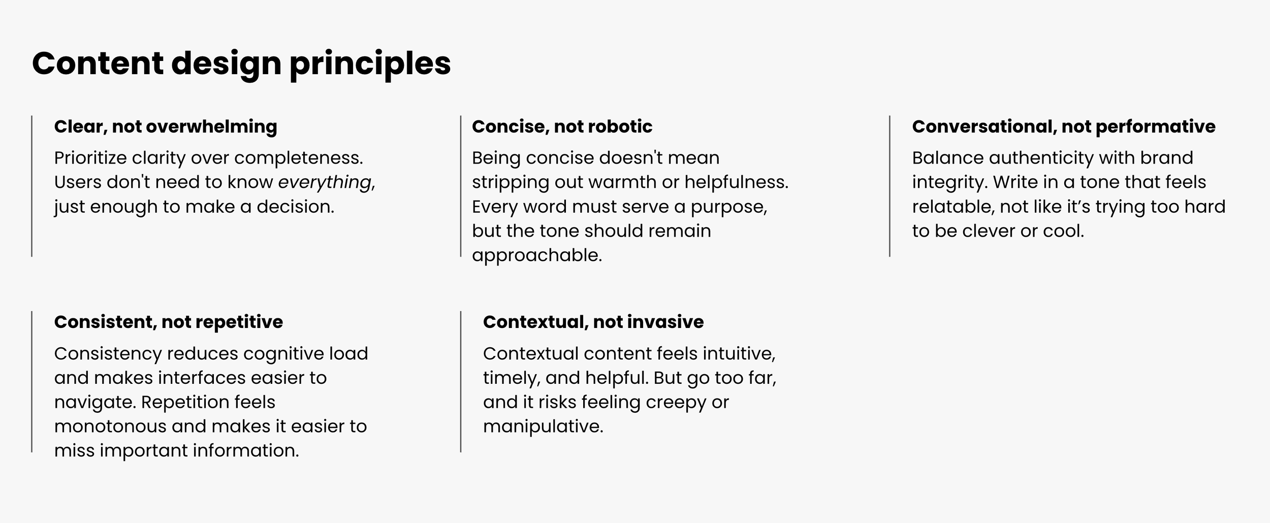 Establishing voice and tone guidelines and a glossary of approved terminology to ensure a cohesive experience at scale.